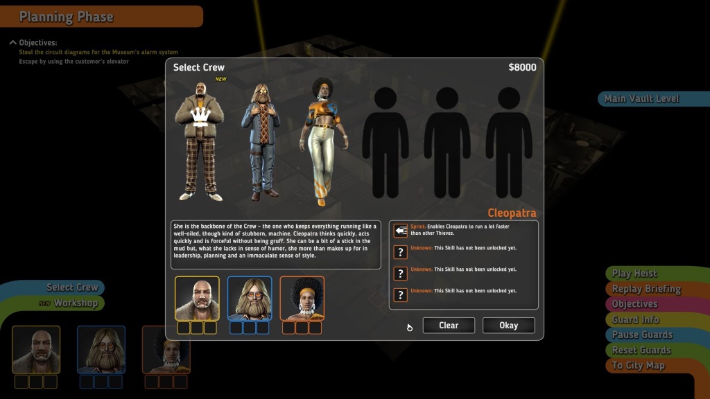 Crookz – The Big Heist is a tactical strategy game set in the funky 1970’s with a slick and groovy atmosphere. Show off the art of thieving by plotting stylish heists and robberies; utilizing espionage and quick-thinking to avoid detection. Implement a successful strategy by assembling and kitting out your team before the job and planning the best way in..
